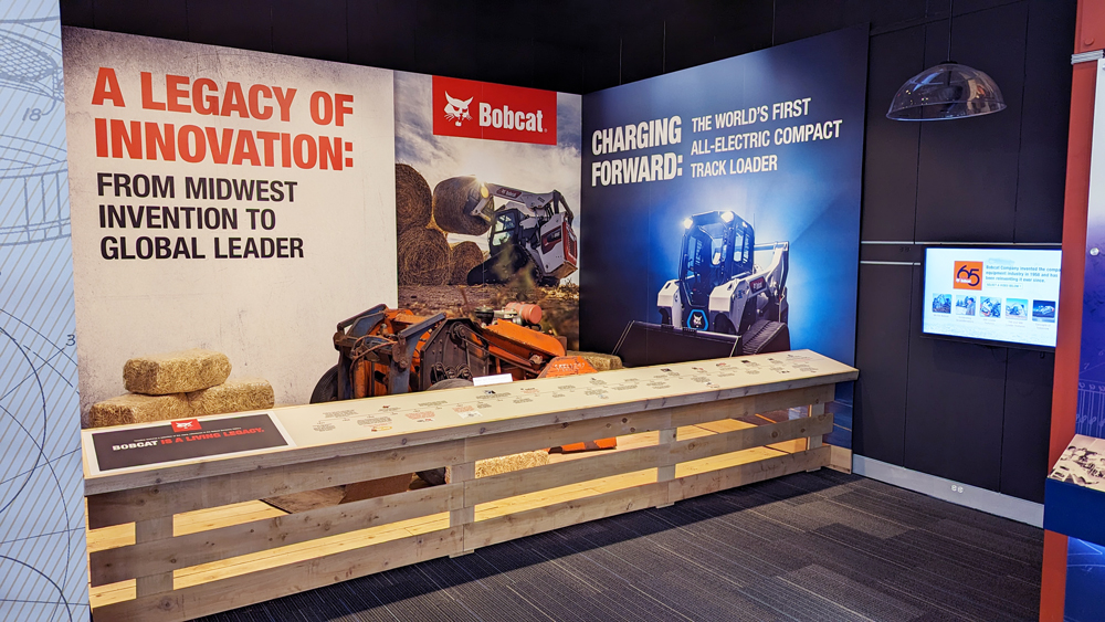 In collaboration with the Bobcat Company, an exhibit was designed for the National Inventors Hall of Fame®(NIHF) Museum to honor the achievements of 2023 NIHF Inductees Cyril and Louis Keller for their invention of the Bobcat® Skid-Steer Loader.